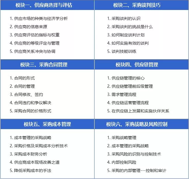 课程方面涉及到采购、供应链、物流、仓储等多行业