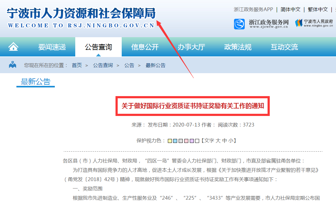 百度进入宁波人社局,在公告查询栏目即可看到这篇文章