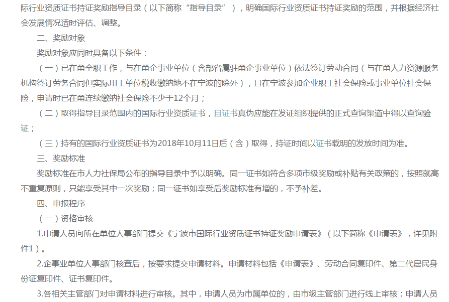 2020年7月,宁波人社局在“关于做好国际行业资质证书持证奖励有关工作的通知”中,指出持有cppm证书者奖励2w元。